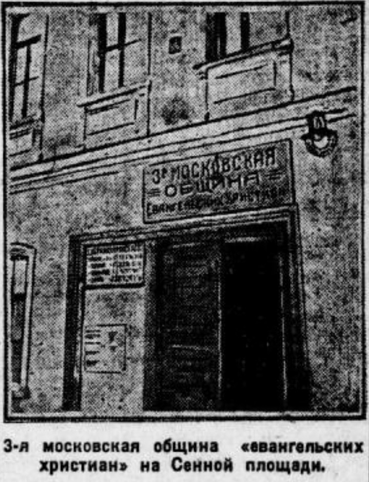 На Сенной площади на доме № 63 красуется вывеска: «3-я община Евангельских христиан».